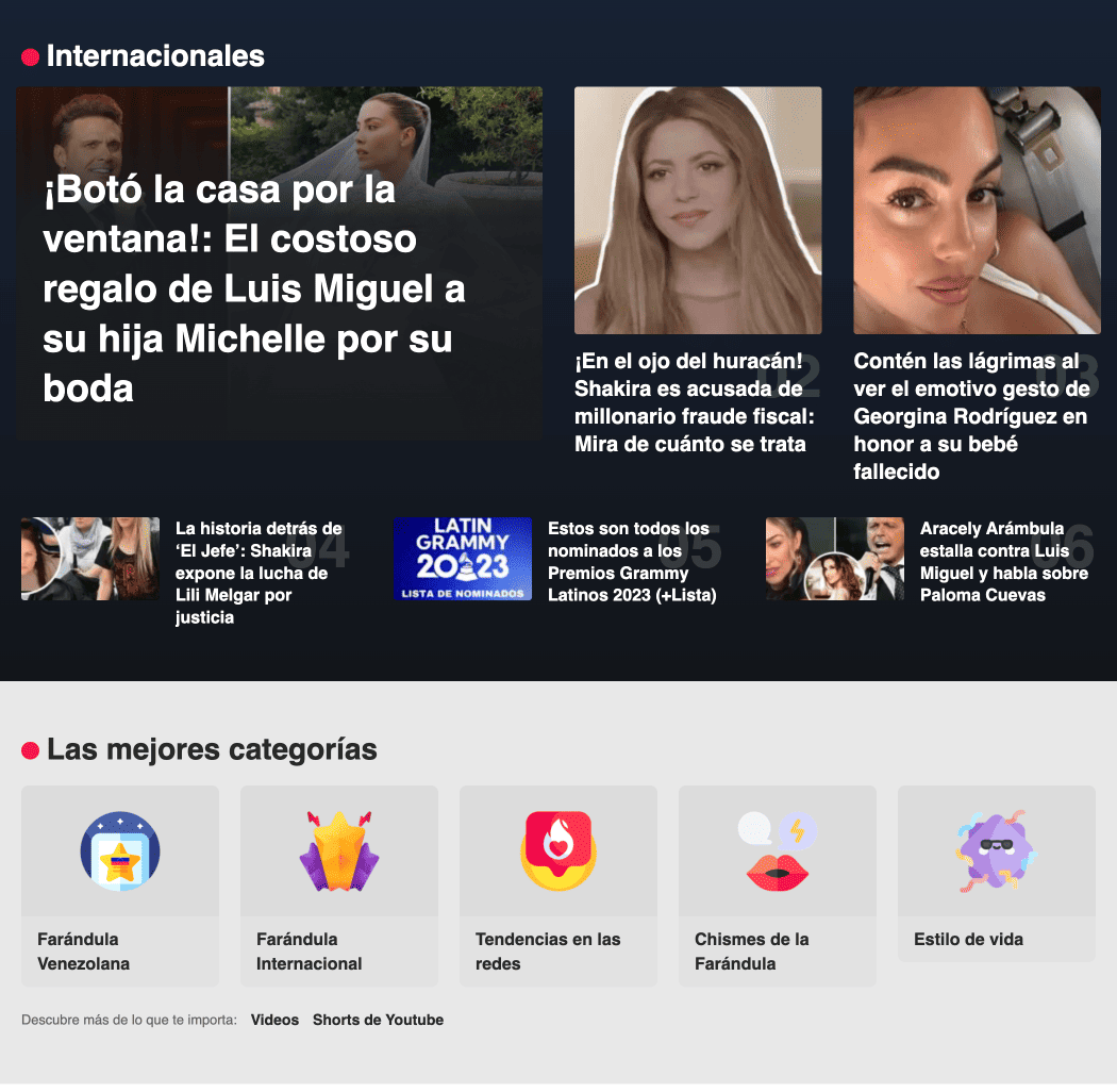 Para mejorar su presencia digital, desarrollamos una página web diseñado para ofrecer una experiencia de usuario óptima en cualquier dispositivo. Implementamos estrategias avanzadas de SEO para aumentar la visibilidad del sitio en los motores de búsqueda y atraer a una mayor audiencia interesada en las noticias de entretenimiento.